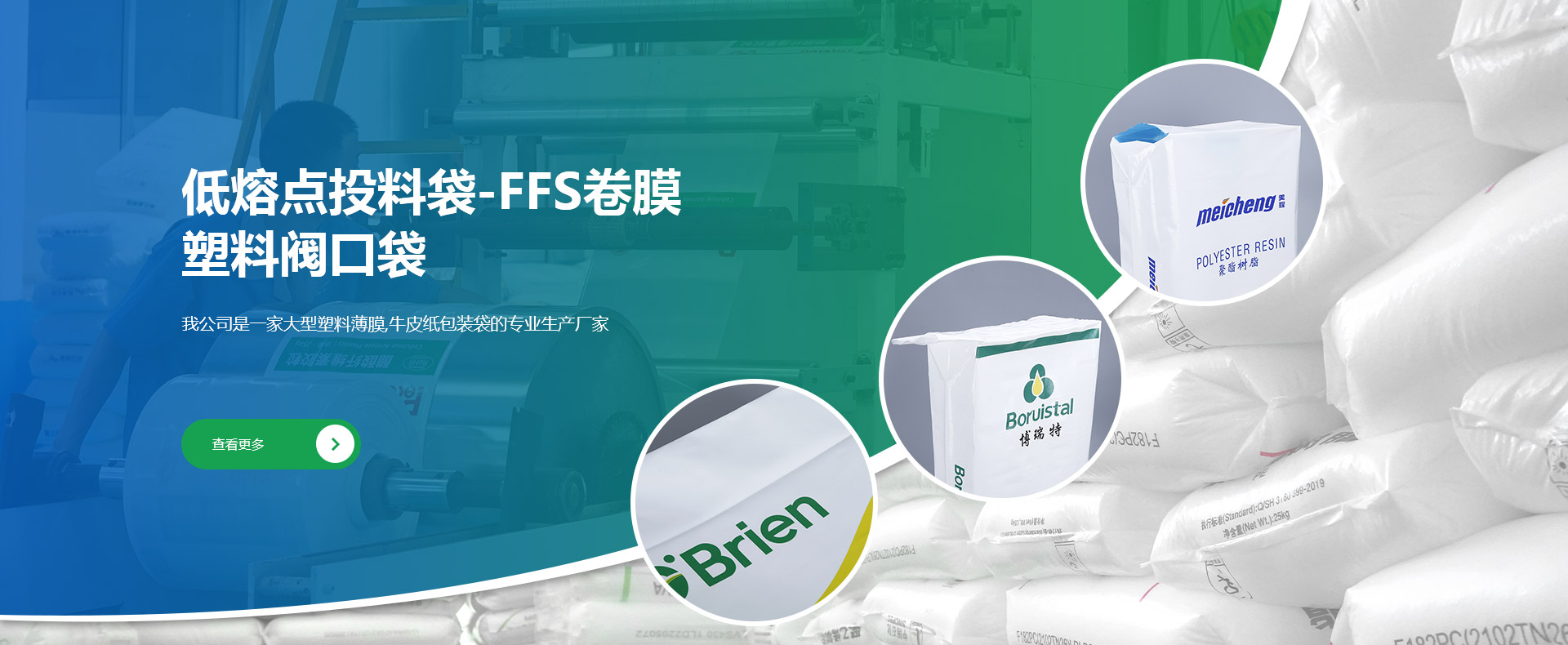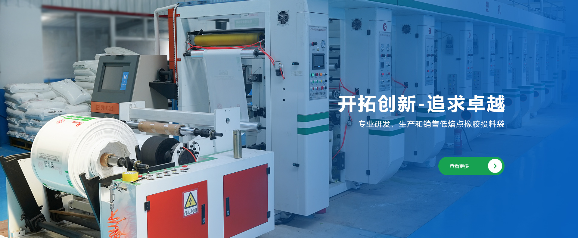 公司創(chuàng)建于1998年,是專(zhuān)業(yè)研發(fā)、生產(chǎn)和銷(xiāo)售低熔點(diǎn)橡膠投料袋、EVA閥口袋、LDPE多層閥口袋、EVA/LDPE低熔點(diǎn)膜、橡膠包裝膜、FFS重包裝袋、普通塑料包裝袋、牛皮紙閥口袋等產(chǎn)品的綜合包裝類(lèi)企業(yè)